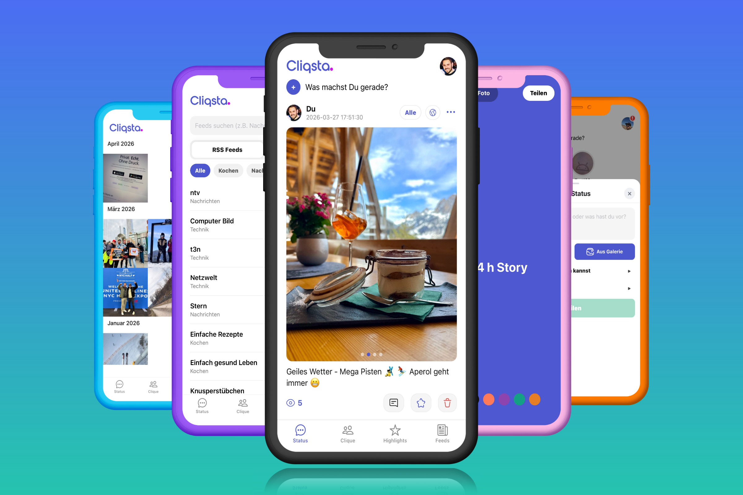 Cliqsta kommt aus der Überzeugung, dass soziale Medien besser sein können — für unser Wohlbefinden, unsere Privatsphäre und unsere echten Beziehungen. Keine Investoren-Logik, kein Wachstum um jeden Preis.